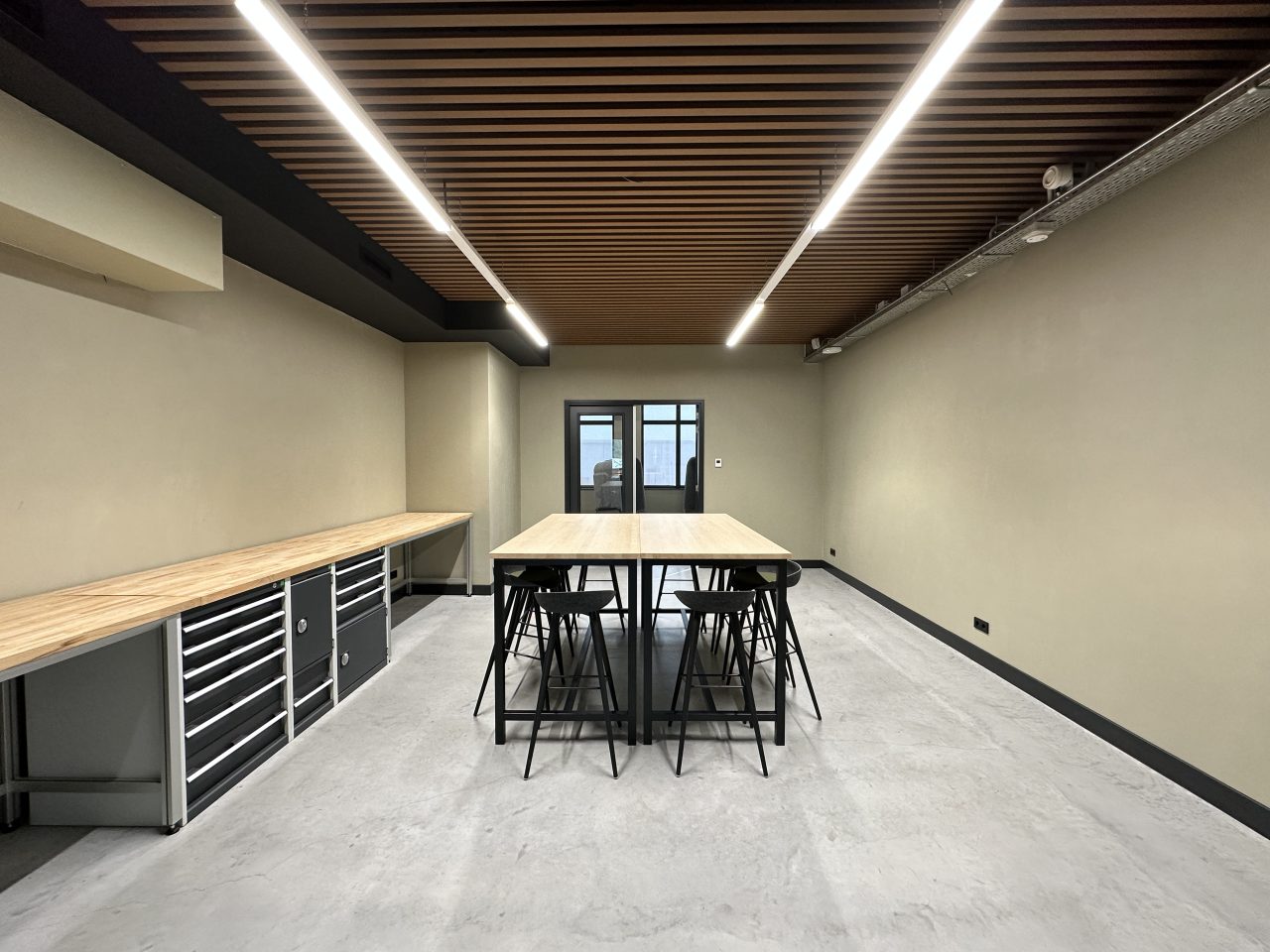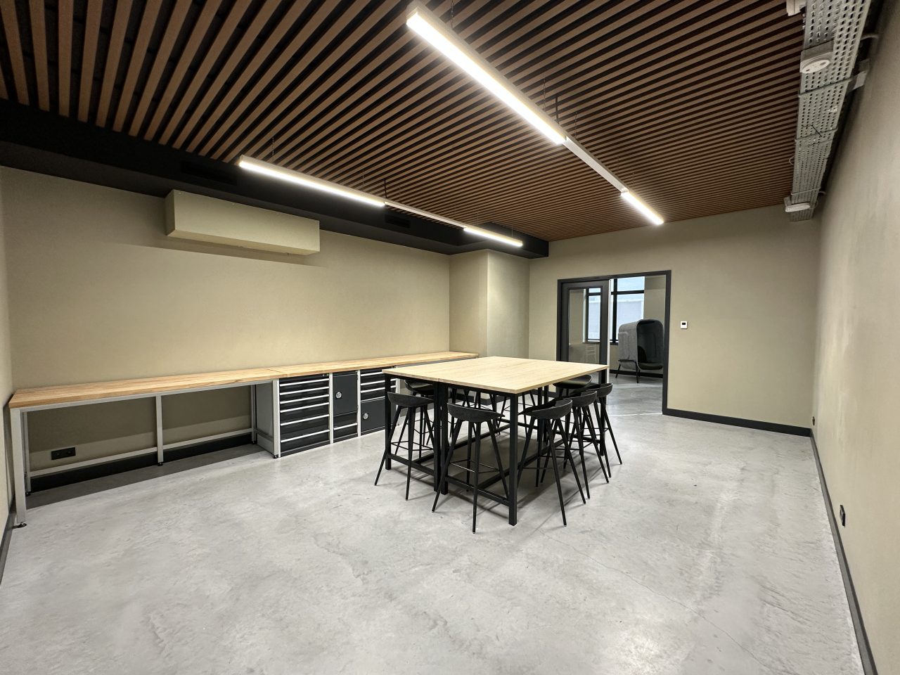 Deze brainstorm- en creatieruimte is ingericht met twee vaste werkbanken en biedt verder de flexibiliteit om de ruimte naar wens in te richten voor overleg, ontwikkeling en innovatie of creatieve sessie.